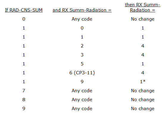 ![]() * If RAD-SUM changed from 9 to 1, change Reason_No_Rad to 0. |